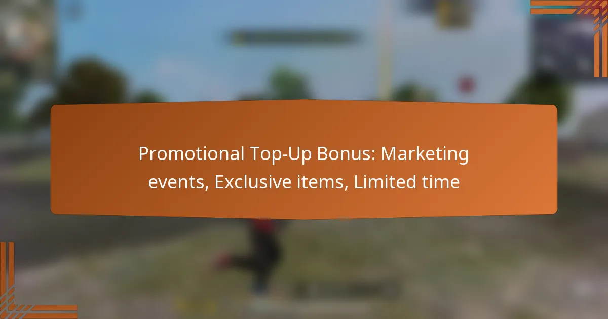 Promotional Top-Up Bonus: Marketing events, Exclusive items, Limited time